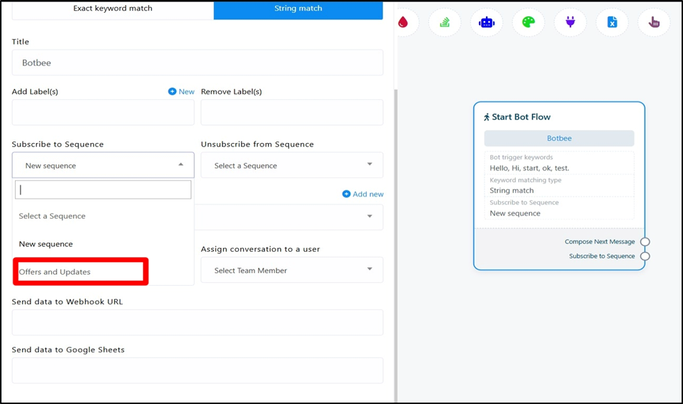 - Click on the message after which you want the sequence and click on “Subscribe to Sequence” and add New Sequence.