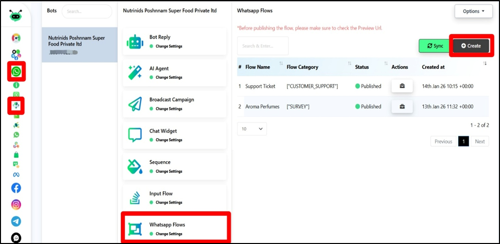 - Click on WhatsApp Flows.