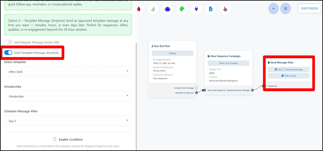 - It can work within the 24-hour WhatsApp session window as well as outside the 24-hour window using approved template messages.