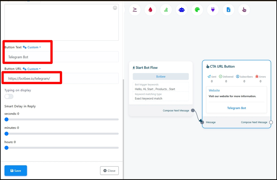 - The CTA (Call-To-Action) URL Button is used to redirect users to an external link.