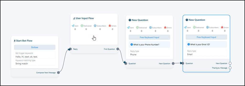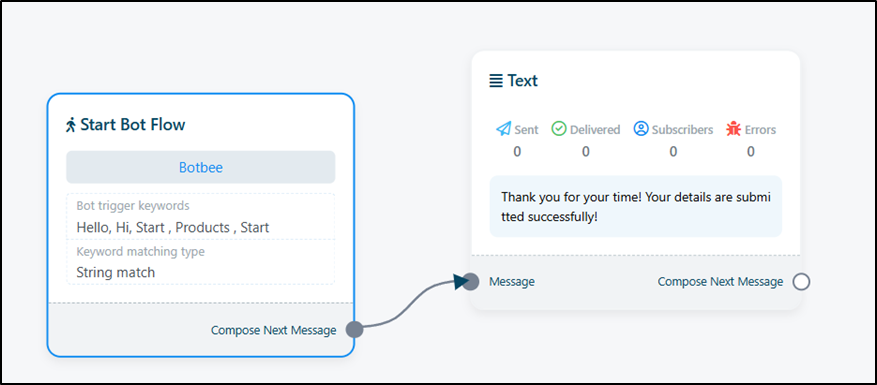 - Exact Keyword Match: The chatbot starts only when the user types the exact keyword (e.g., typing hello exactly).