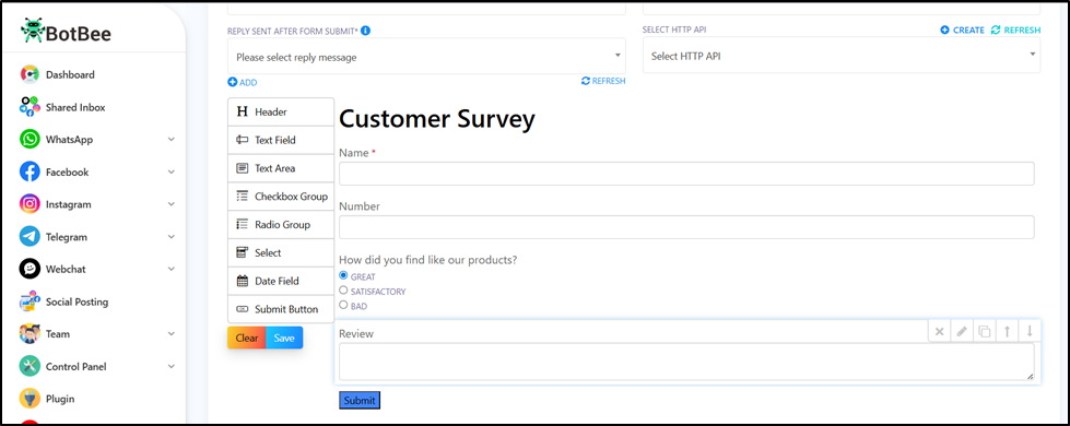 - Supports different input types like text, phone number, email, and multiple choice.