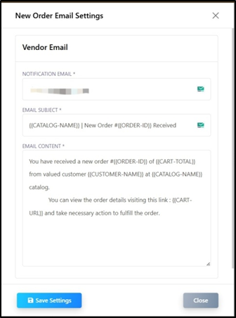 - Clicking on New Order Email allows you to create an email notification.