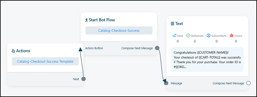 - Clicking on Checkout Success redirects you to the Bot Flow Builder.