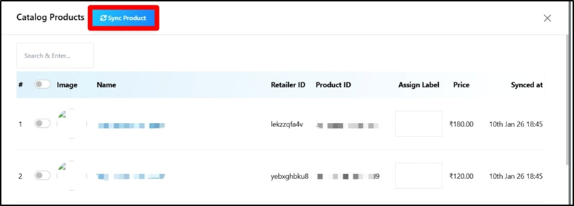 - You can also sync products by clicking on the Sync Products button to update the catalog with the latest product data.