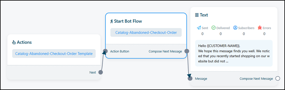 - Clicking on Cart Reminder redirects you to the Bot Flow Builder.