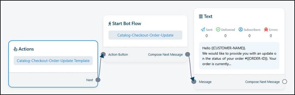 - You can design the flow for order update messages that customers receive when the order status changes (e.g., shipped, delivered).