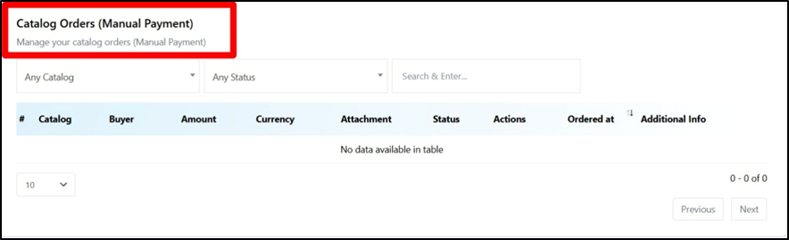 Catalog Orders (Manual Payments):