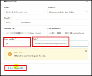 - Click on save Callback API.