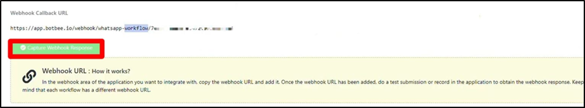 - Go back to BotBee and click on Capture Webhook Response.