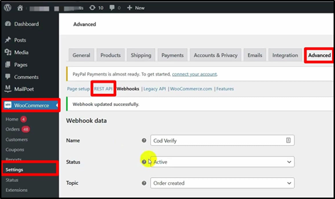 Step 4: Configure WooCommerce Webhook: