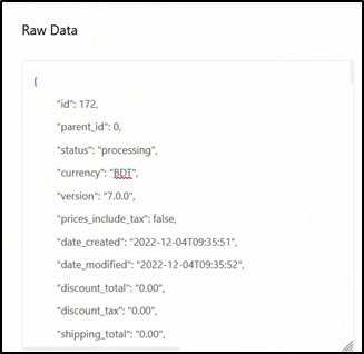 - Once the webhook is triggered, you will see the sample response data received from WooCommerce.