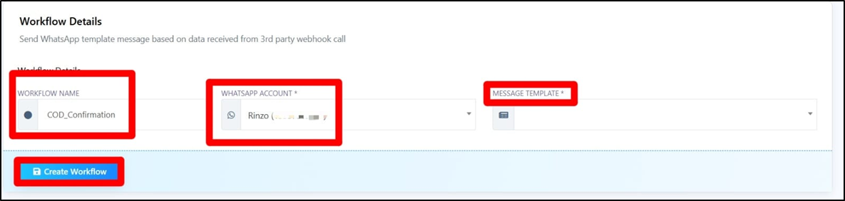 - Go to Webhook Workflow under WhatsApp and click Create.
