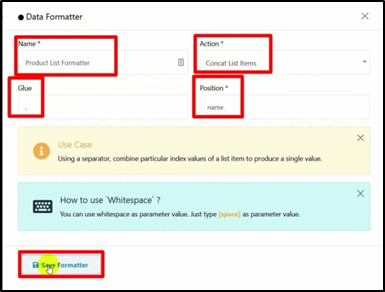 - Name: Give a name to the formatter.