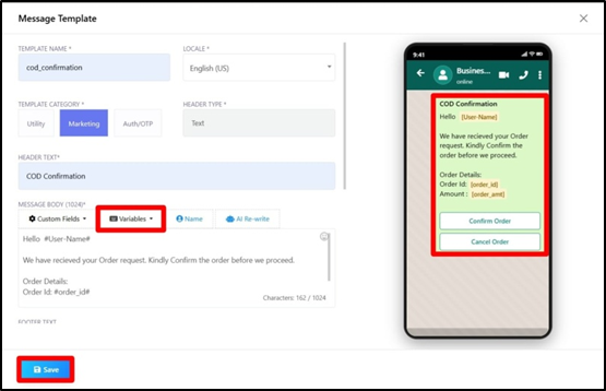 Sending COD Order Confirmation messages on WhatsApp