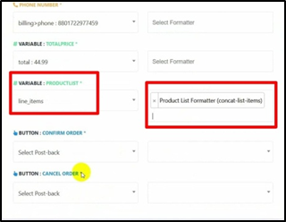 - Then select a value for the product list variable it is line items under the list items.