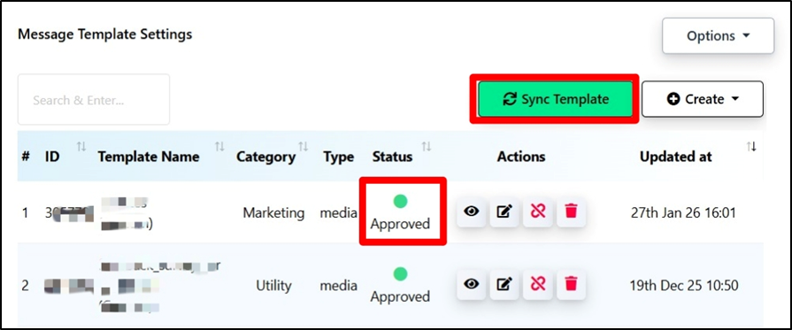 (Note: Creating a template for the first time can take up to 24 hrs for approval.)