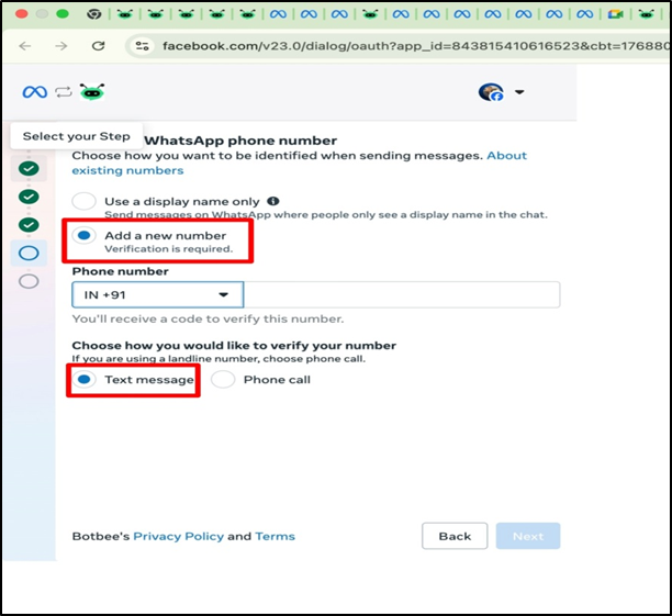 - Click on the above option of “Start with a new WhatsApp Phone Number.”