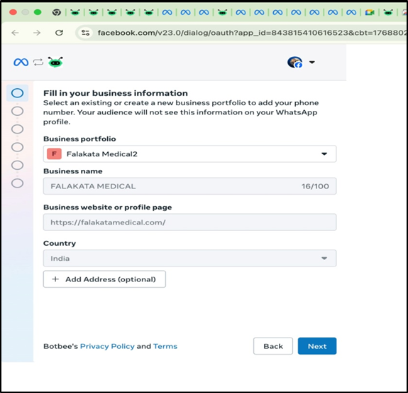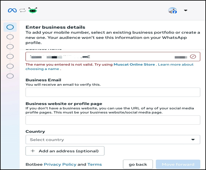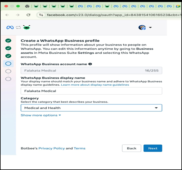 In this article, you will learn how to complete the WhatsApp Business API setup on BotBee, including payment details, business verification, and profile settings. These steps are required to fully activate WhatsApp messaging.