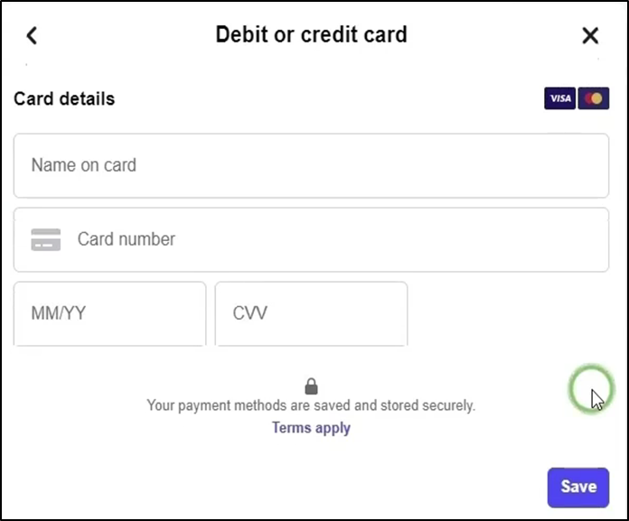 - Add your card details here then click save your card ended successfully. Hereafter your Meta conversation charges are collected.