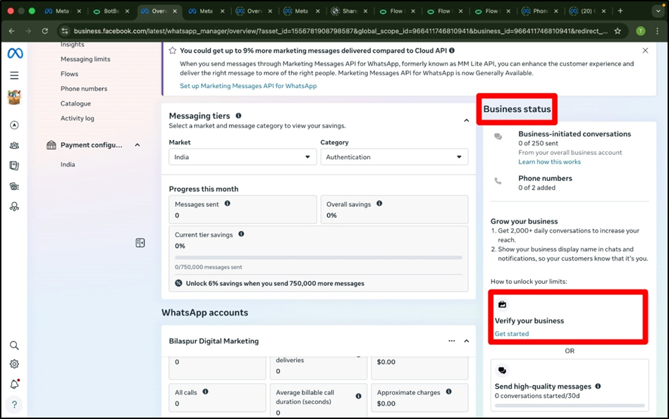 - Click on “Get Started” in Verify your Business Option.